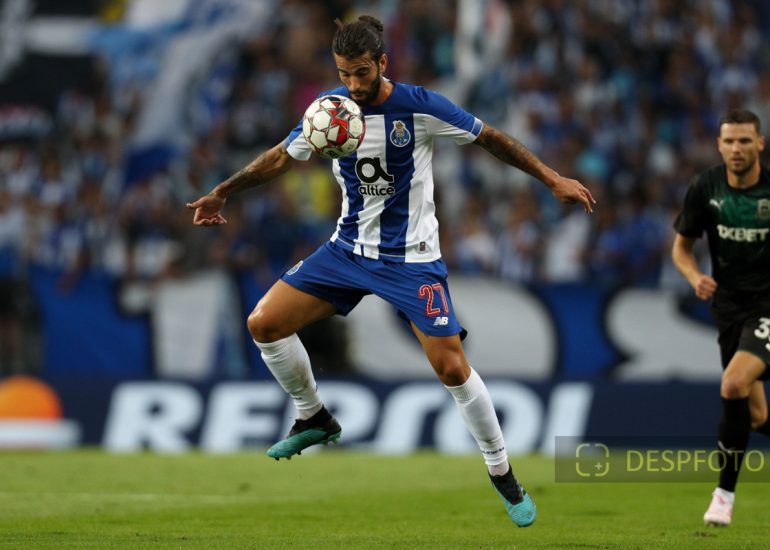 Porto’s Portuguese midfielder Sergio Oliveira in action. FC Porto - FC Krasnodar, Third Qualifying Round at Dragao Stadium. UEFA Champions League 2019/2020. 20h:00, Aug 13, 2019, Porto, Portugal.