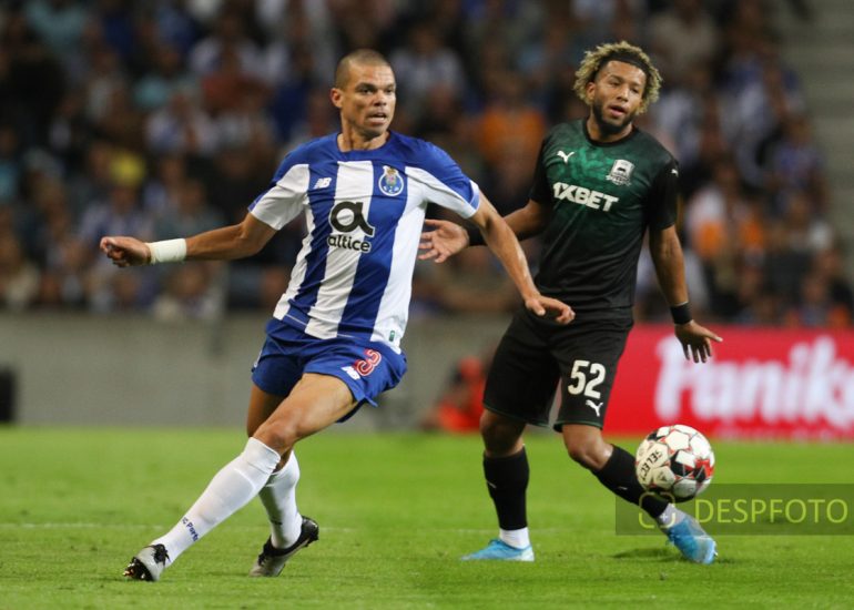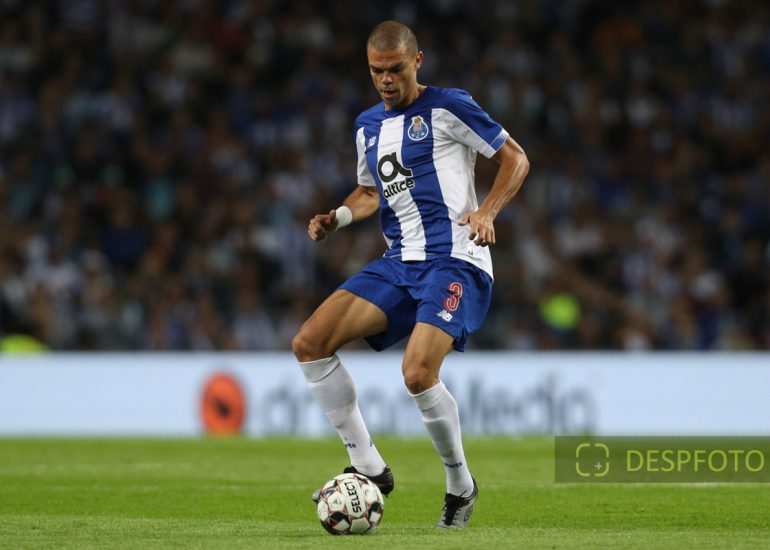 Porto's Portuguese defender Pepe in action FC Porto - FC Krasnodar, Third Qualifying Round at Dragao Stadium. UEFA Champions League 2019/2020. 20h:00, Aug 13, 2019, Porto, Portugal.