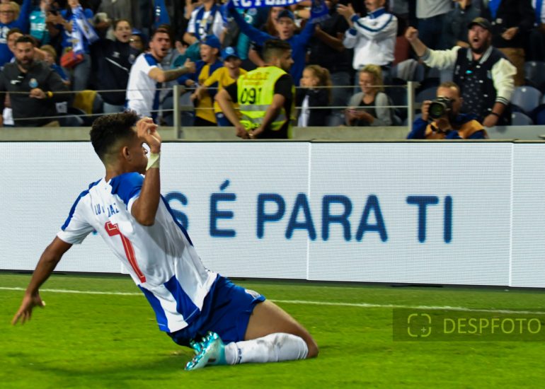 Porto’s Cape Verdean forward Ze Luis celebrates after scoring a goal FC Porto - FC Krasnodar, Third Qualifying Round at Dragao Stadium. UEFA Champions League 2019/2020. 20h:00, Aug 13, 2019, Porto, Portugal.