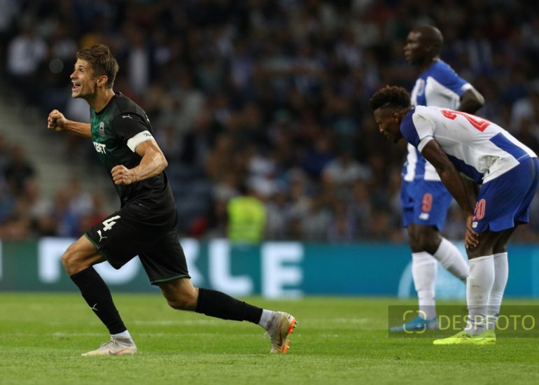 Sergei Petrov defender of FC Krasnodar celebrates the victory in the match and UEFA Champions League Qualification. FC Porto - FC Krasnodar, Third Qualifying Round at Dragao Stadium. UEFA Champions League 2019/2020. 20h:00, Aug 13, 2019, Porto, Portugal.