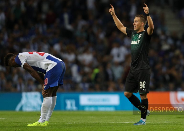 Magomed Suleymanov forward of FC Krasnodar score a goal FC Porto - FC Krasnodar, Third Qualifying Round at Dragao Stadium. UEFA Champions League 2019/2020. 20h:00, Aug 13, 2019, Porto, Portugal.