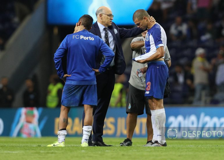 Porto's Portuguese defender Pepe reacts after missing the match. FC Porto - FC Krasnodar, Third Qualifying Round at Dragao Stadium. UEFA Champions League 2019/2020. 20h:00, Aug 13, 2019, Porto, Portugal.