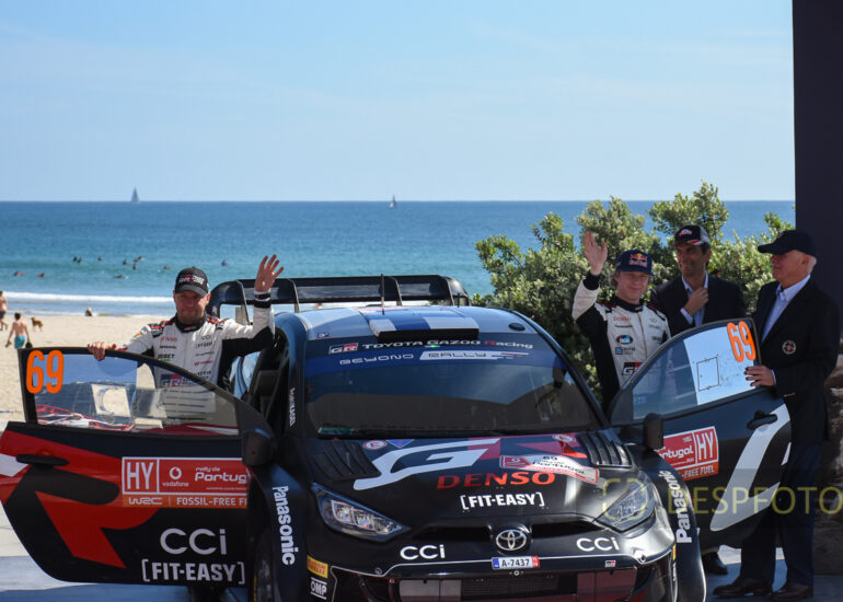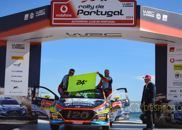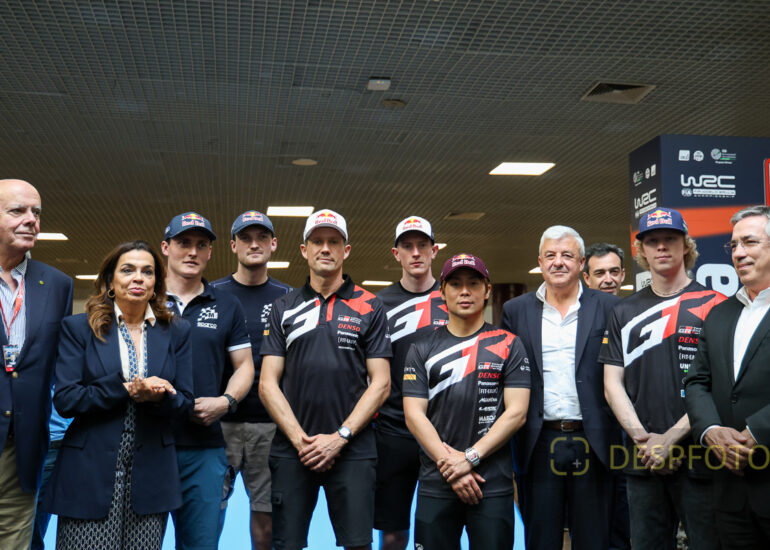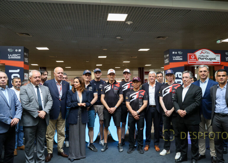 Drivers, sponsors and Carlos Barbosa. Image of the first day of the Rally de Portugal at Exponor, Matosinhos. 08 ~ 12 May 2024, Portugal. © DESPFOTO 2024 - Worldwide Photo Agency