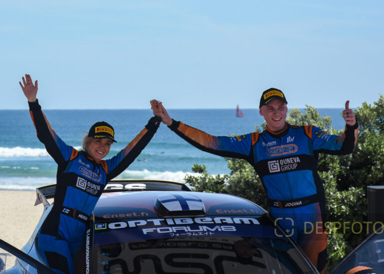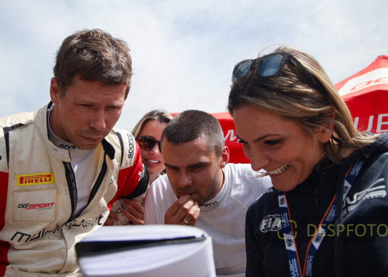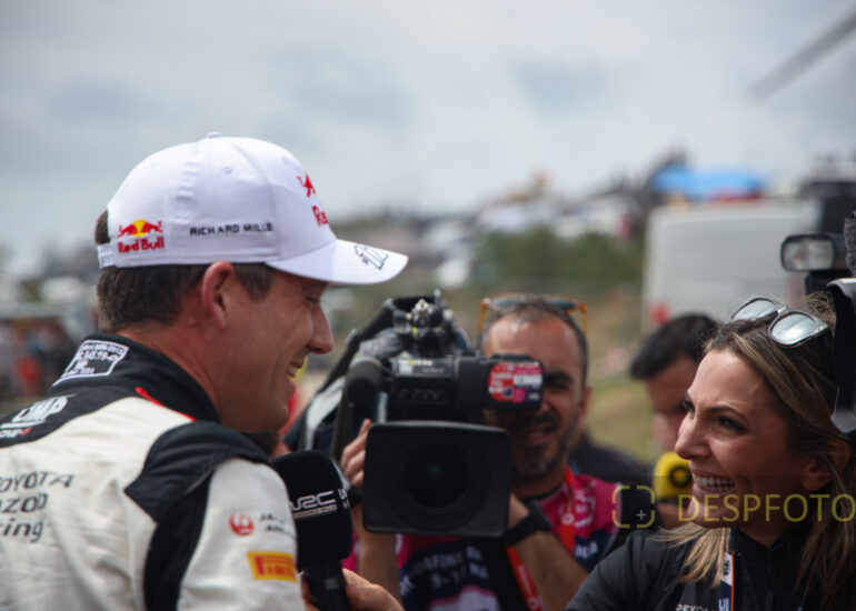 WRC reporter, Molly Pettit, interviews the Winner of the Portugal Rally, Seabstien Ogier. 09 ~ 12 May 2024, Portugal. © DESPFOTO 2024 - Worldwide Photo Agency