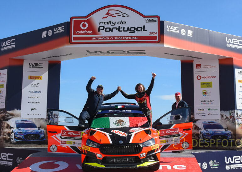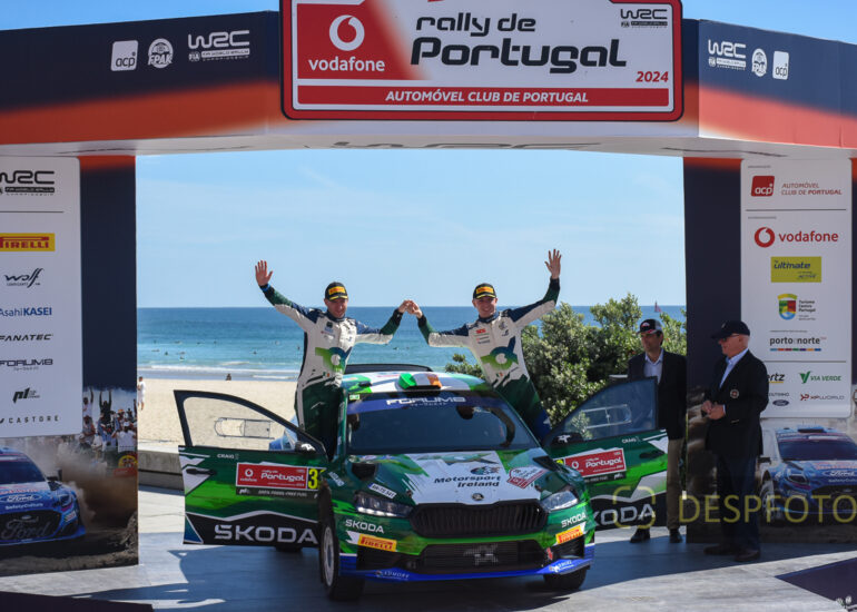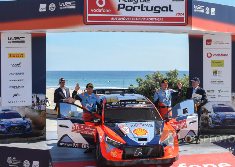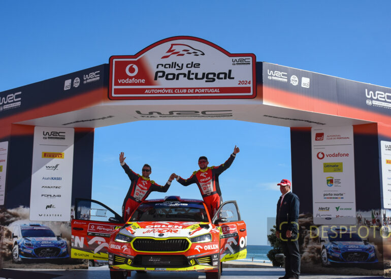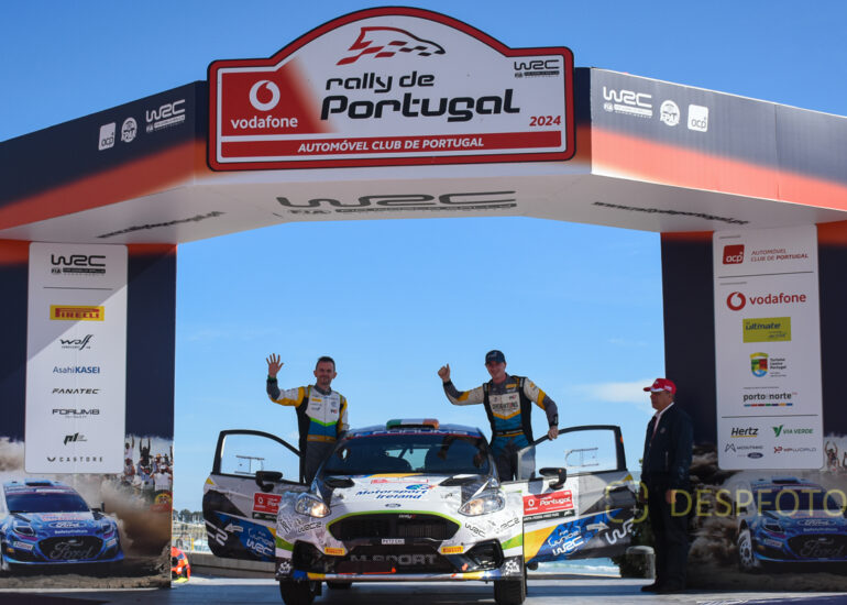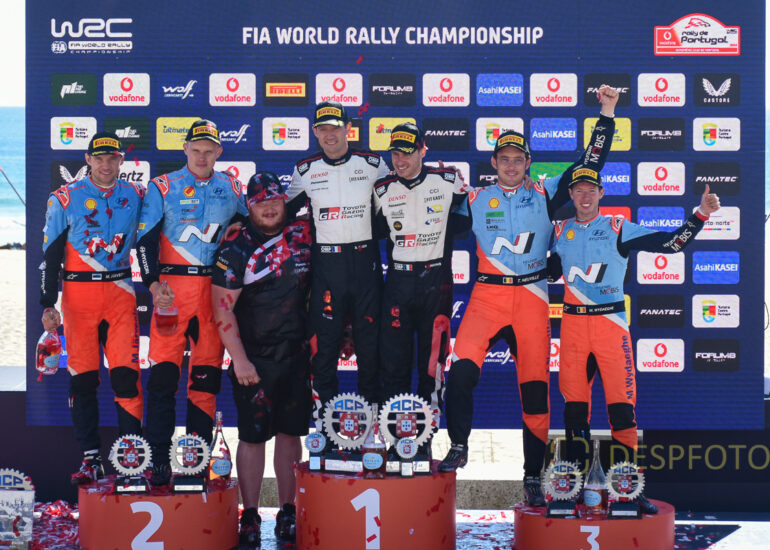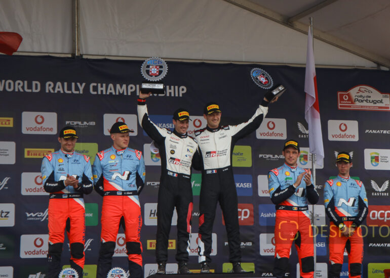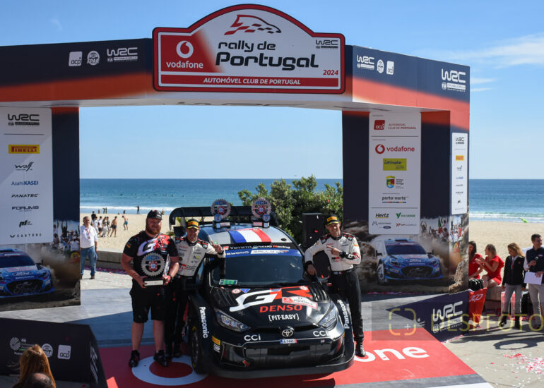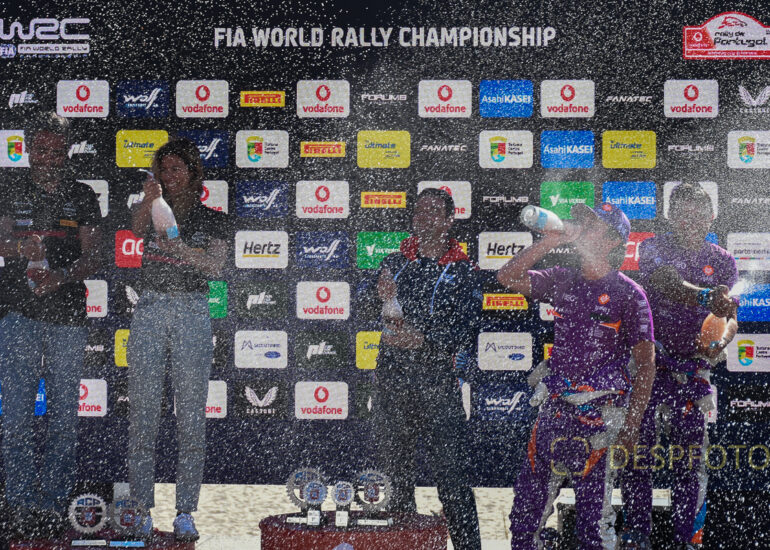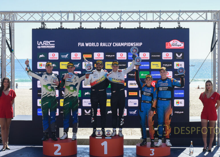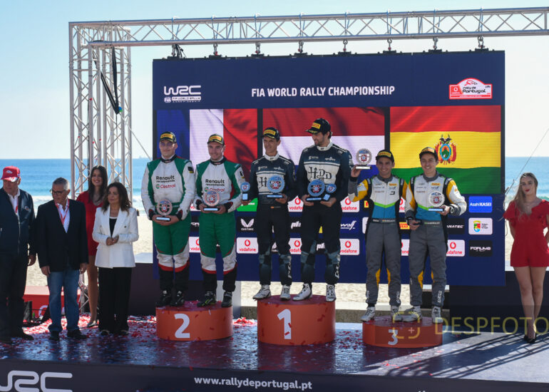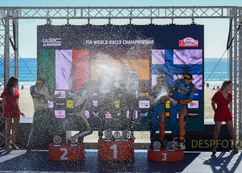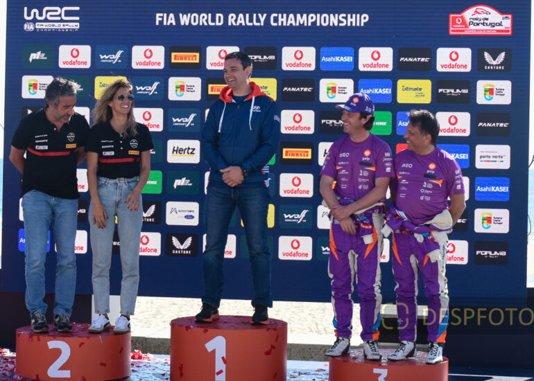 Podium of final at PowerStage in FAFE-2, at Rally de Portugal. 09 ~ 12 May 2024, Portugal. © DESPFOTO 2024 - Worldwide Photo Agency