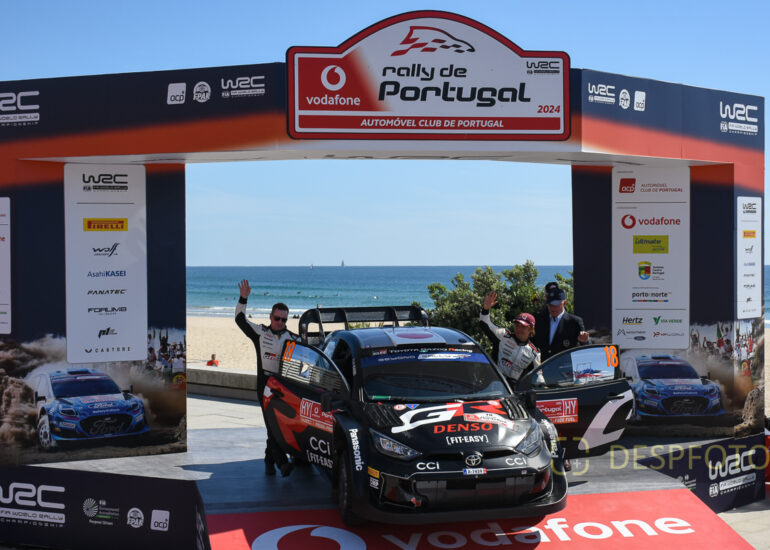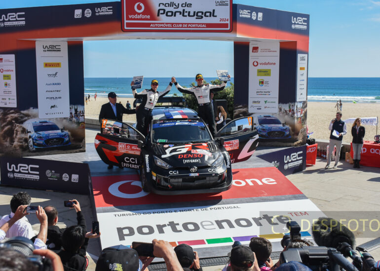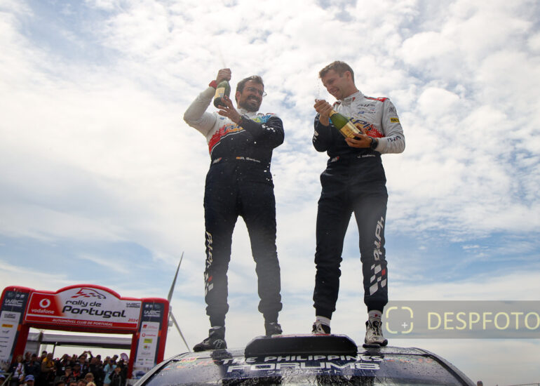 Sebastien OGIER / Vincent LANDAIS, celebrate de victory. Image during the SS22-PowerStage in FAFE-2, at Rally de Portugal. 09 ~ 12 May 2024, Portugal. © DESPFOTO 2024 - Worldwide Photo Agency