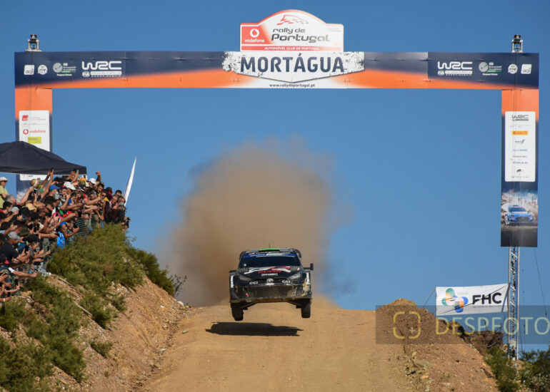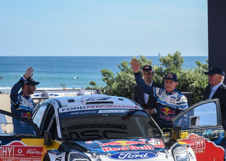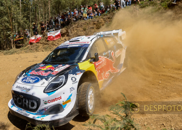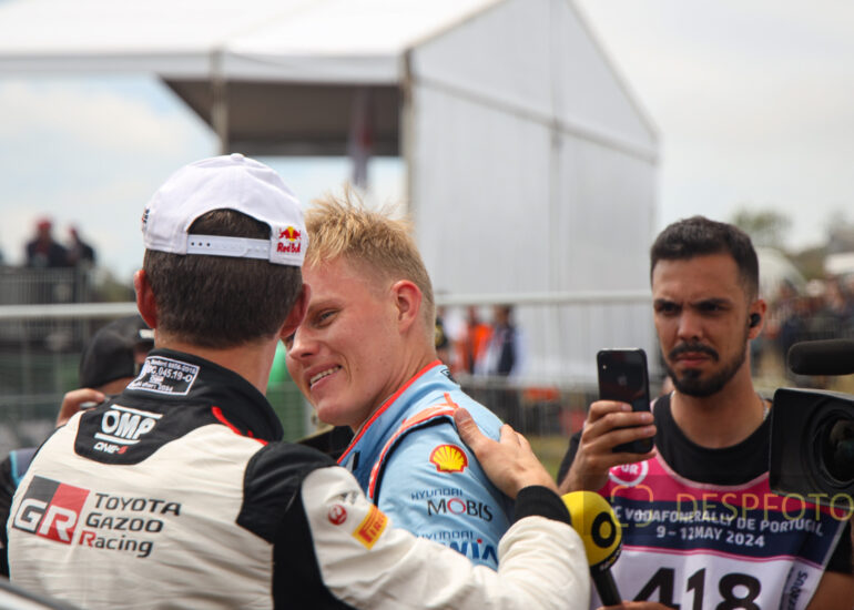 Ott Tanak congratulates Sebastien Ogier. Image during the SS22-PowerStage in FAFE-2, at Rally de Portugal. 09 ~ 12 May 2024, Portugal. © DESPFOTO 2024 - Worldwide Photo Agency