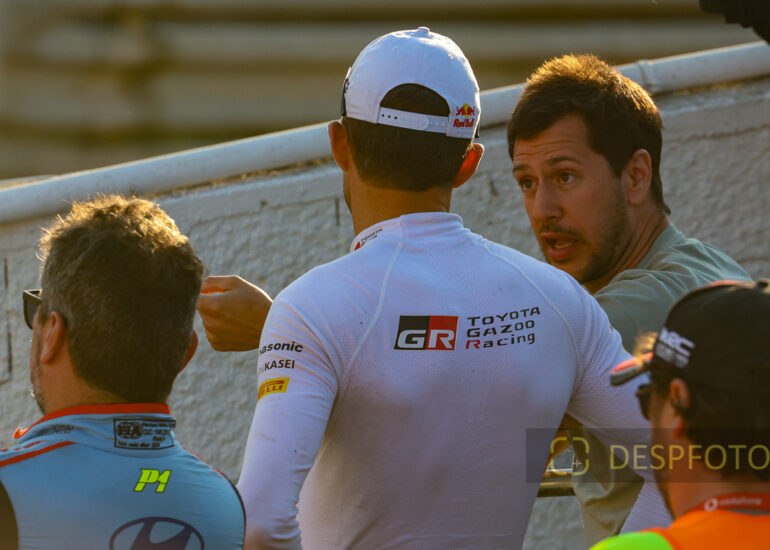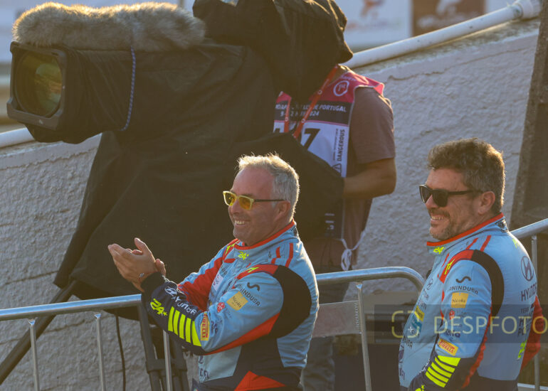 Ricardo Teodosio and Jose Teixeira, applaud Ott Tanak. Image during the SSS18 in LOUSADA, at Rally de Portugal. 09 ~ 12 May 2024, Portugal. © DESPFOTO 2024 - Worldwide Photo Agency