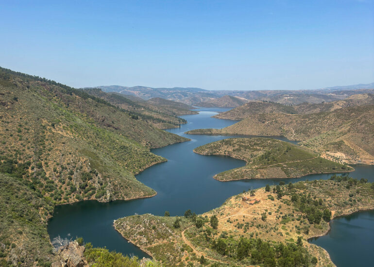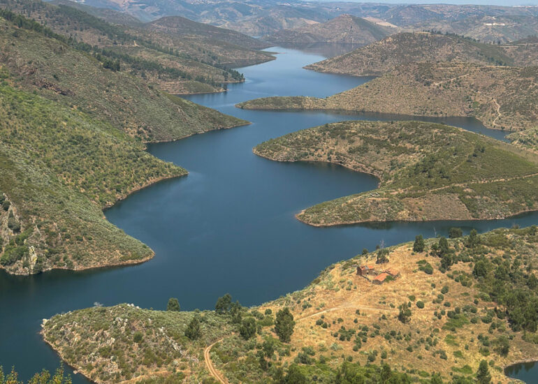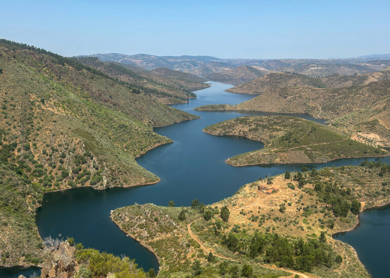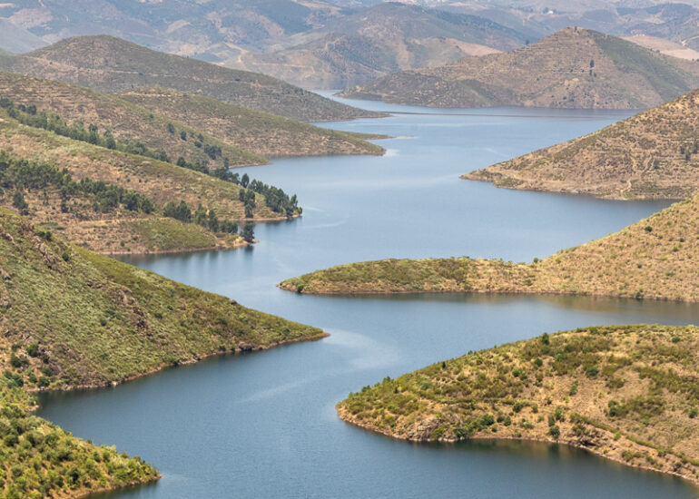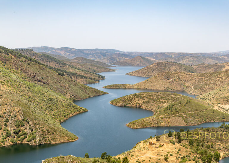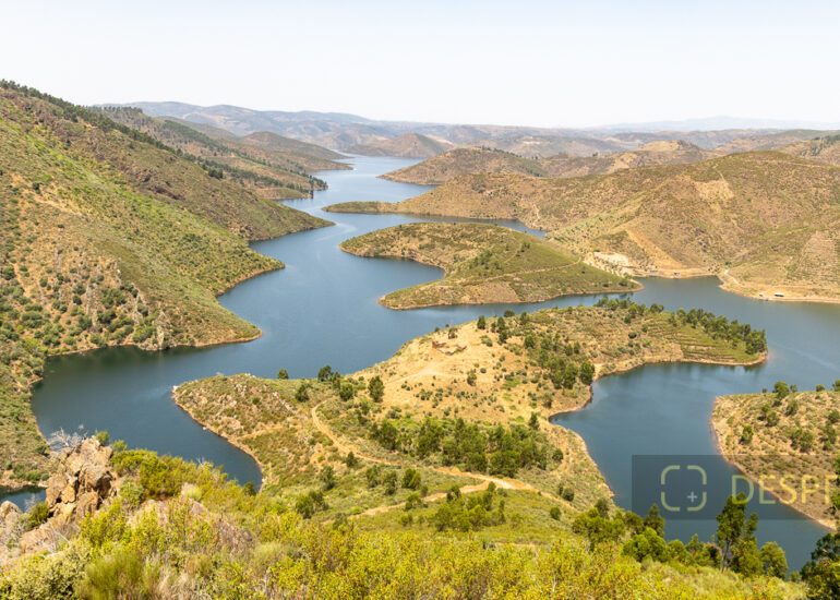 Imagem das margens do rio Sabor, ladeado pelas localidades de Meirinhos e Estevais. O serpenteado, nasceu após a construção da barragem do Baixo Sabor, que iniciou a construção em 2008. Miradouro Da Serpente Do Medal, Castelo Branco, Estevais, Mogadouro, Bragança. Junho 2025. © DESPFOTO 2025 - Worldwide Photo Agency ® Licensed image for National Geographic